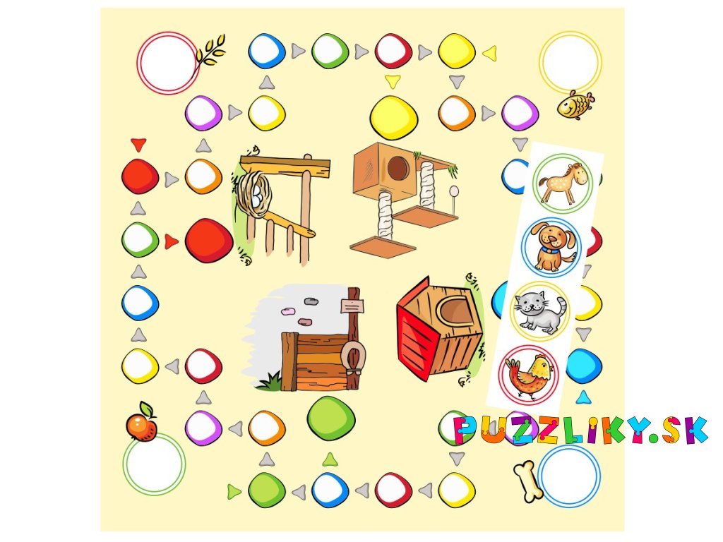 Hra "Domáce zvieratká, rýchlo domov!/Domácí zvířátka, honem domů!" - bavlnený panel s plsťou