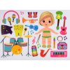 Dievčatko a hudobné nástroje. Vytvor si koncertný sál alebo izbu plnú hudobných nástrojov v šitej knihe tzv. Quiet Book. Arch o veľkosti A4. Postavička vysoká 15 cm.