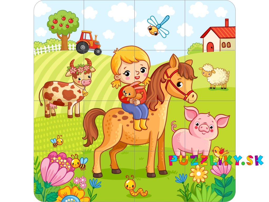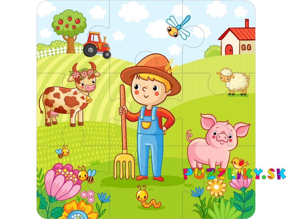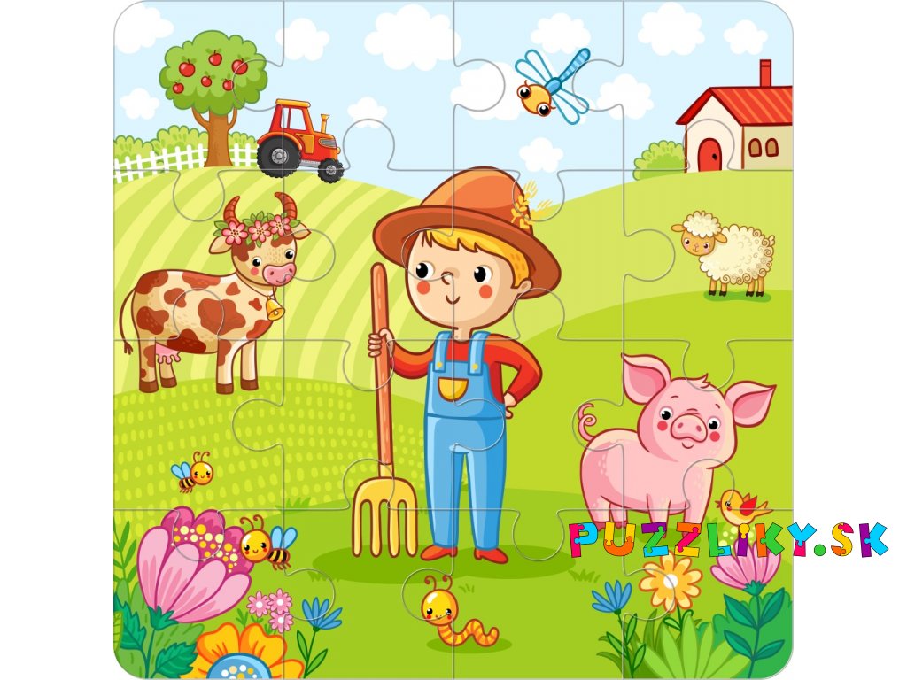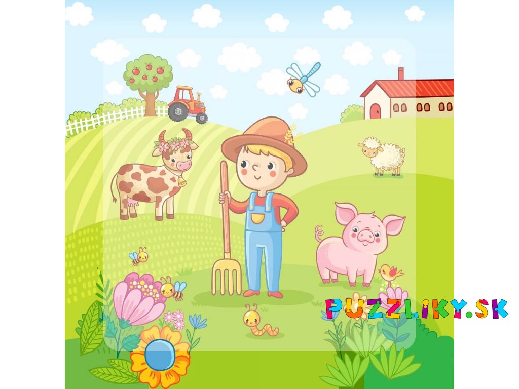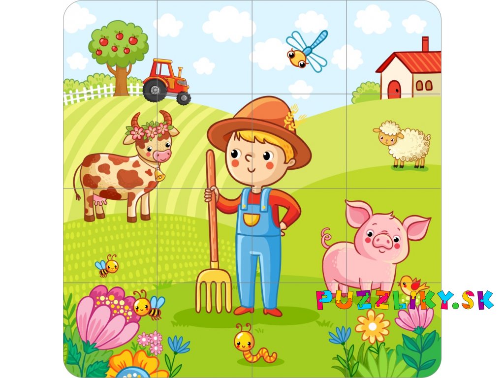Puzzle "Farma" 20x20cm - 2-vrstvý plstený panel s výrezmi