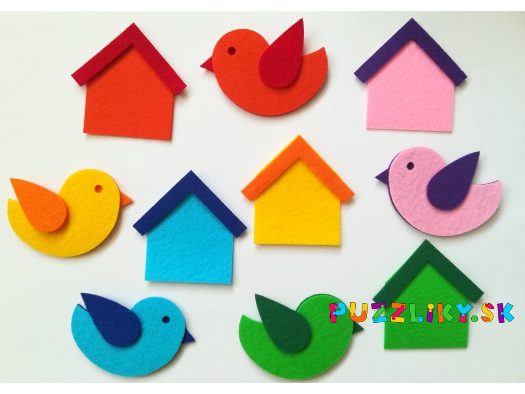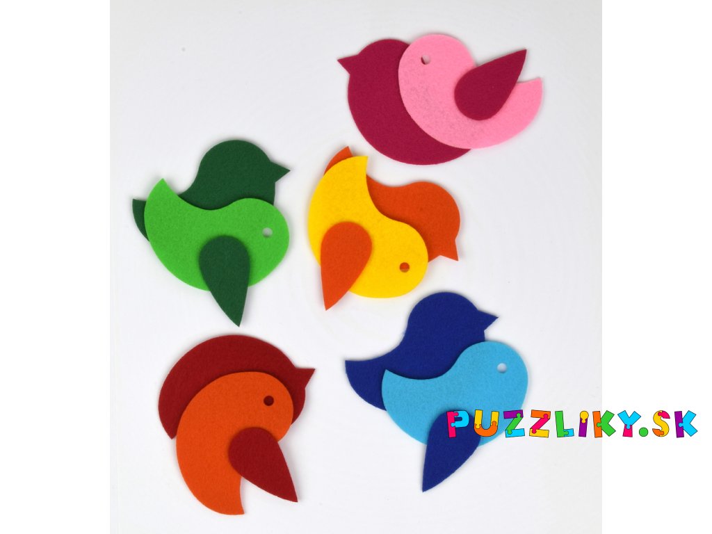 Laserom vyrezávané vtáčiky/ptáčky s búdkami, ktoré sa spolu doplňujú podľa farby krídla a striešky. Veľkosť jedného výrezu je cca 6x5 cm. Každy vtáčik sa skladá z vyrezaných 2 vrstiev a samostatného krídla, ktoré nie sú nijak spojené. Sada obsahuje 5 vtáčikov a 5 búdiek. Je možné zakúpiť iba variant s vtáčikmi.